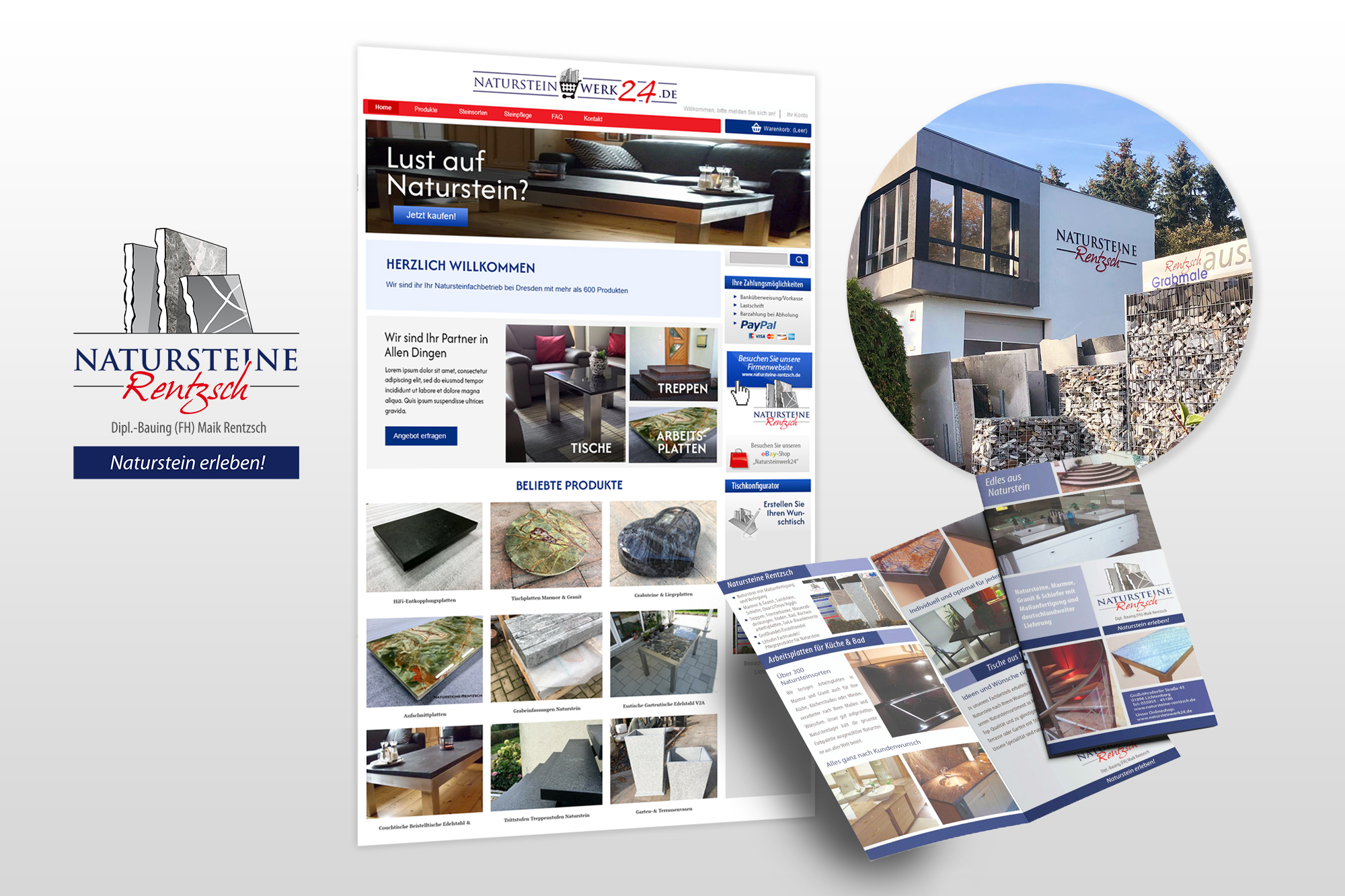 Brand identity, online shop and marketing materials for a German natural stone company elevating their online presence and marketing efforts.